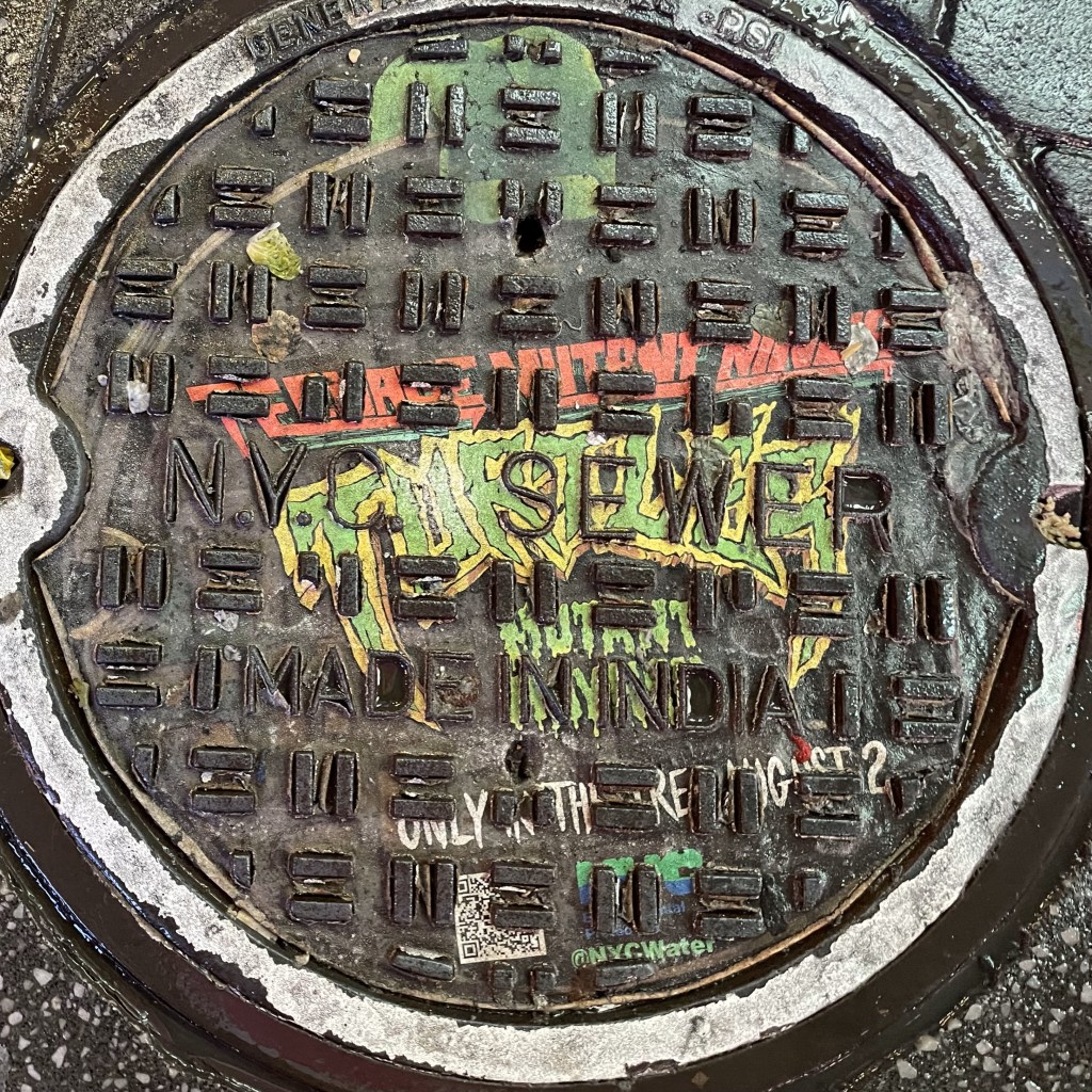 Lots of things. But especially the water. Spotted across Times Square and elsewhere are manhole covers with the Teenage Mutant Ninja Turtles logo painted on them. It turns out that the NYC Water is like, really good. Follow them on their socials.